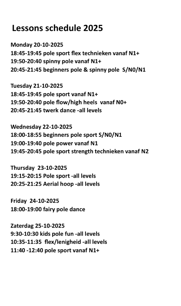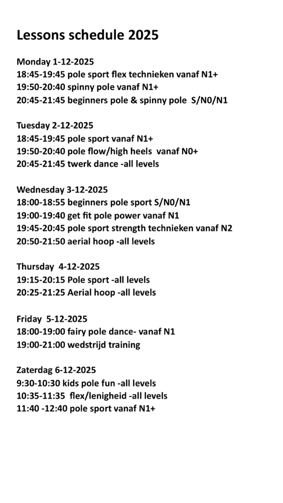 -N1=beginners (ondersteboven met support) N1+=beginners (ondersteboven zelf kunnen) N2=intermediair